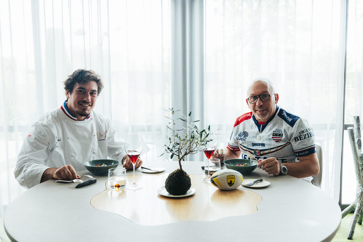 Quand le rugby rencontre la gastronomie : d’un côté, Clément Doumenc, troisième ligne passionné et attaché à ses racines carcassonnaises ; de l’autre, Franck Putelat, chef doublement étoilé, artisan du goût et de la rigueur. Entre exigence, partage et amitié sincère, les deux hommes se retrouvent autour d’une même philosophie : aller toujours plus haut, mais “tout simplement”.