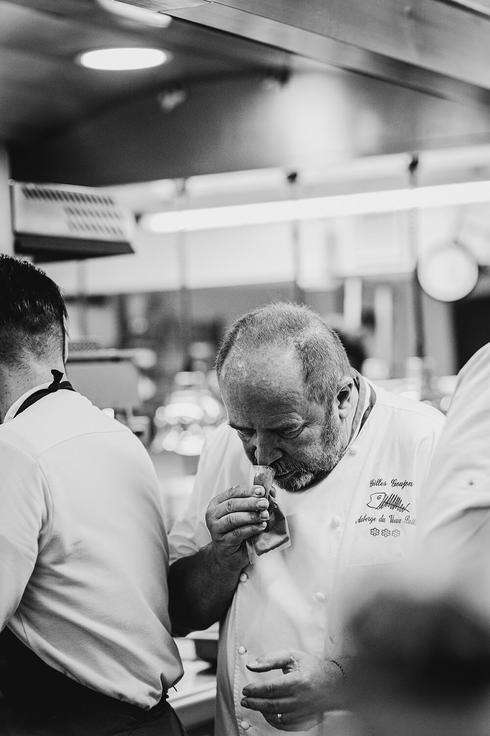 Axel, le benjamin, a pris une autre voie : celle de la pâtisserie. D’abord en sport-études, il a finalement trouvé sa vocation entre sucre et chocolat. “Le chef ne m’a jamais poussé vers la cuisine. Mais en grandissant, j’ai compris que mon équilibre était ici.” Formé chez Olivier Bajard, Paul Bocuse et Patrick Roger, il incarne la douceur et la rigueur. Il compose des desserts tout en émotion : précis, légers, portés par l’instinct. Tous trois prolongent la vision du chef avec respect et spontanéité, faisant de cette table triplement étoilée un lieu où tradition et modernité dialoguent en harmonie. Au-delà des plats, c’est l’expérience complète de l’Auberge qui captive. Le service, impeccable et attentionné, garantit que chaque visite se transforme en un moment privilégié. Les suggestions du sommelier accompagnent à merveille les explorations culinaires, chaque vin étant choisi pour sublimer les nuances des assiettes. En somme, l’Auberge du Vieux Puits n’est pas uniquement un lieu où l’on mange, mais un temple dédié à l’art culinaire et à l’esprit de famille. Chez les Goujon, la gastronomie est une affaire de cœur, de partage et de passion.