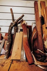 “Je travaille des bois qui ont une histoire.” Pour Cédric Garcia, 38 ans, chaque manche raconte une vie antérieure : un amandier offert par un client, une douelle de barrique tachée de tanin, une tête de lit des années 1960 chinée en brocante, ou encore du morta, ce chêne noir fossilisé depuis 2 500 ans. Dans une démarche écoresponsable, la plupart des bois proviennent de dons ou de la récupération. À l’atelier, on croise aussi de nobles essences : olivier, noyer, chêne clair, ébène profond ou wengé dense et régulier. L’objet, dès lors, n’est pas qu’outil : il devient mémoire. Ébéniste de formation, l’artisan catalan a conservé de son premier métier le goût des veines et des fibres, qu’il fait désormais dialoguer avec la netteté d’une lame.