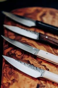 Ses couteaux sont conçus pour durer. À condition de les respecter. “Jamais au lave-vaisselle: les produits bousillent le fil et le bois.” La règle est simple: rinçage à l’éponge, essuyage immédiat, un peu d’huile de lin ou d’olive de temps à autre. Pour les clients les plus proches, l’artisan propose même un retour à l’atelier pour ré-affûtage.