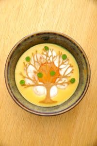 Certainement pas chez moi car, de toutes façons, je ne suis jamais assez satisfait ! Mais je garde un souvenir fort d’émotion gustative au Japon, chez le Chef Toru Okuda. Il est réputé au Japon pour sa maîtrise de la cuisine kaiseki, la haute cuisine impériale de Kyoto.